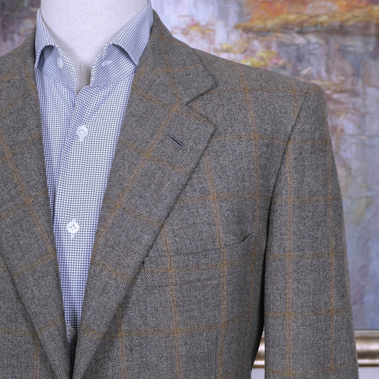 Brioni, harmaa käsintehty irtotakki, koko 50, ruudukkokuvio