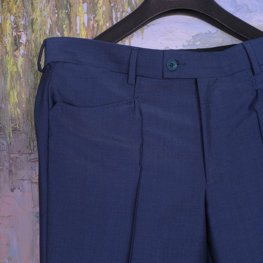 Räätäli Mikael Sinisalo, siniset suorat housut, koko 36, mohairkangas