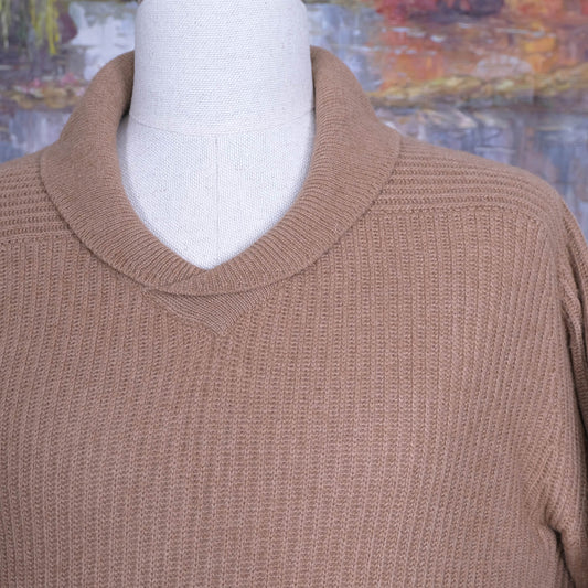 Clan Douglas, vaalea shaalikaulusneule, koko L, kamelinkarvaa