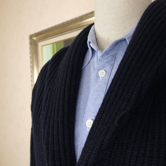 William Lockie, navy blue cardigan, size L, geelong