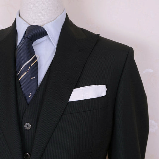 Corneliani, dark three piece suit, size 44UK, thin stripe