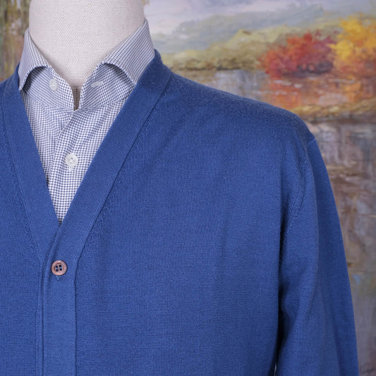 Cruciani, blue cardigan, size XL, fine wool