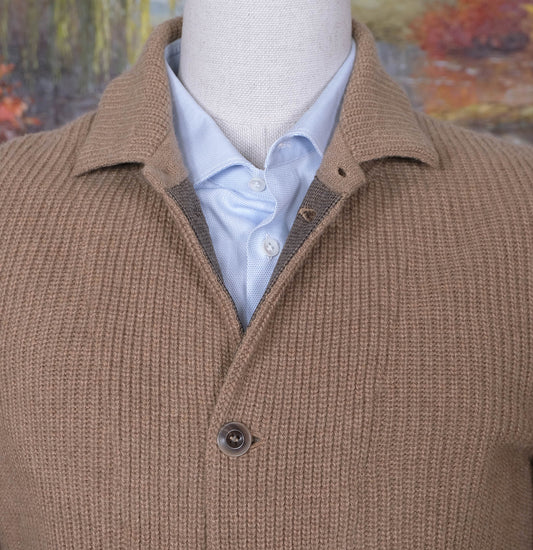 Clan Douglas, light shawl collar jumper, size L, camelhair