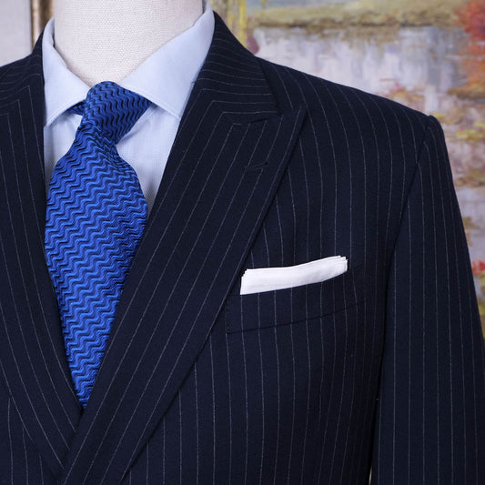 Pinstripes, navy suit, size 50EU, handmade, striped