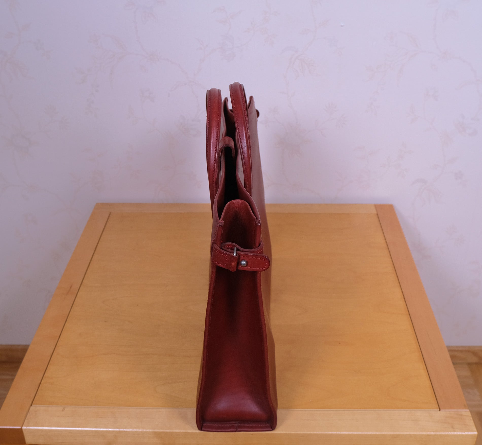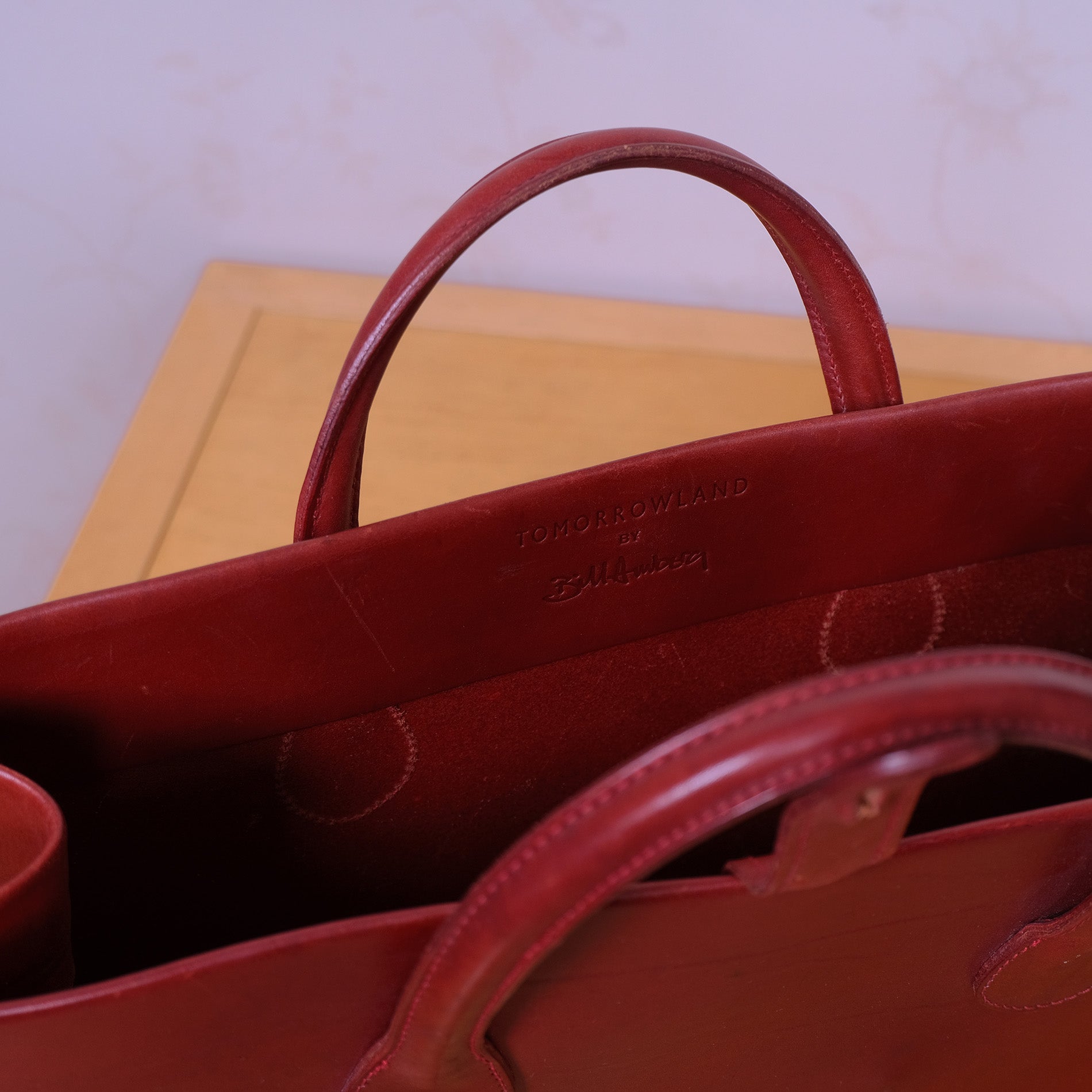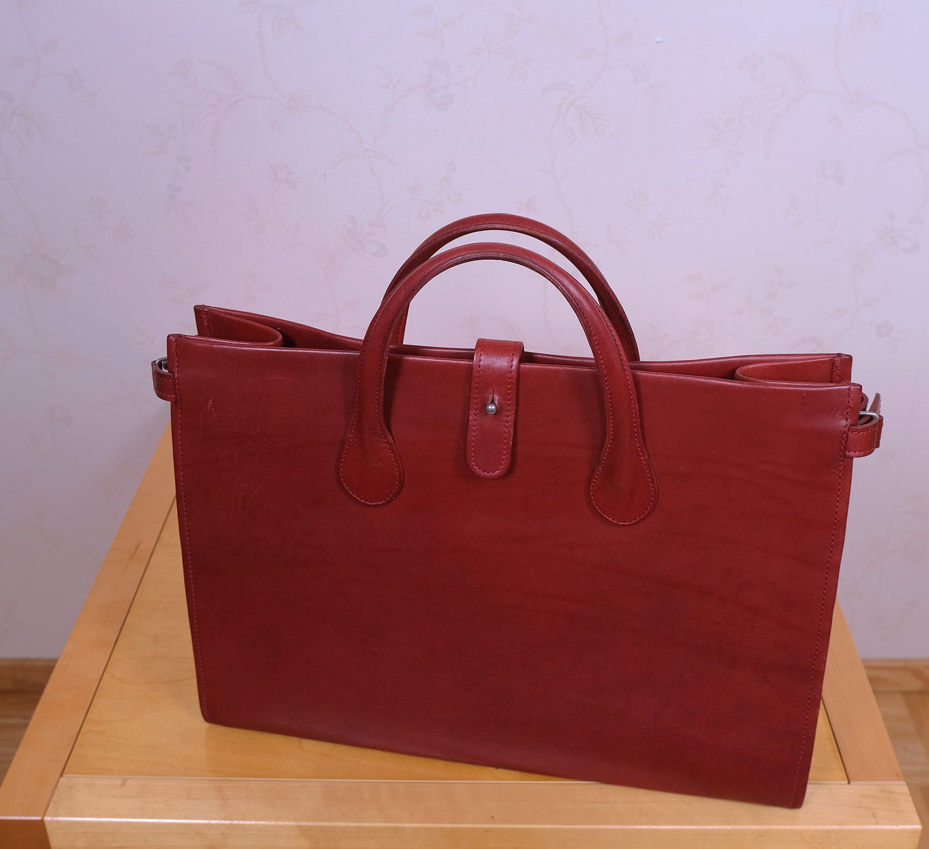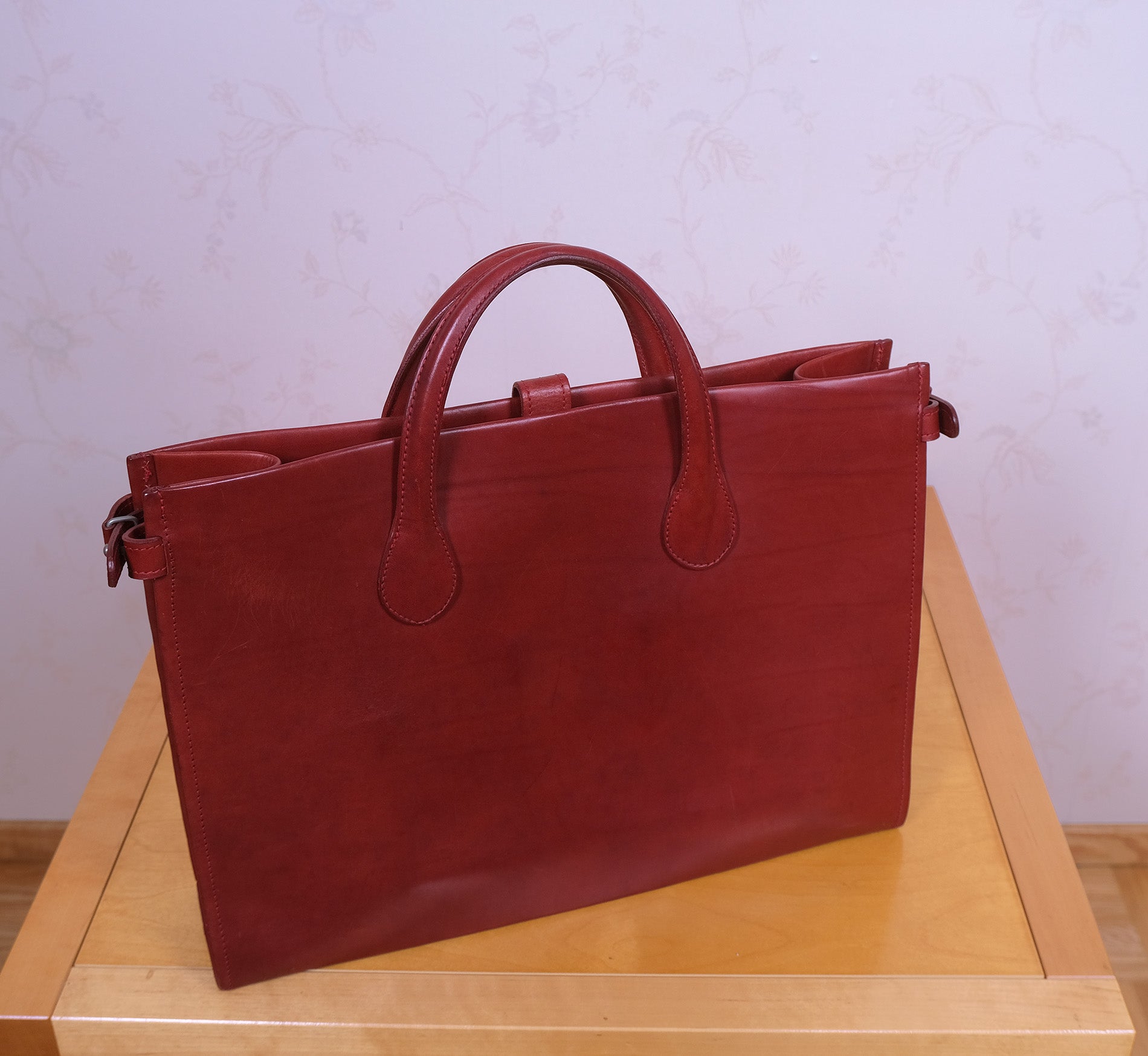 Bill Amberg, hieno punaruskea salkku, tehty Englannissa