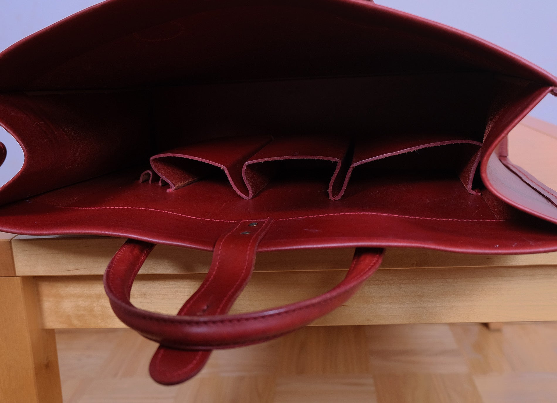 Uuteen käteen tarjolla punertavan ruskea salkku, johon mahtuu kannettava työkone sekä olennaiset.