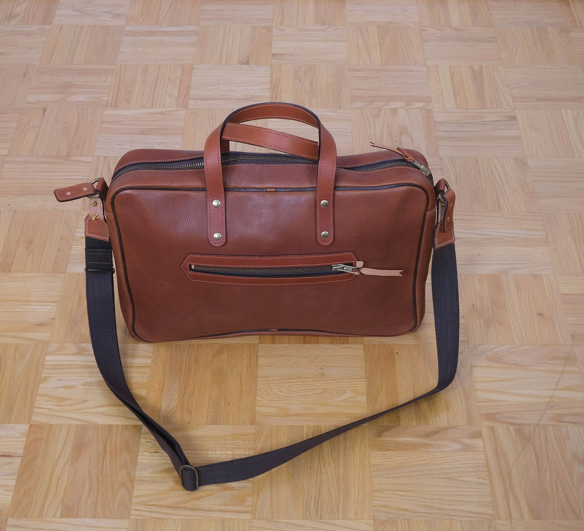 Bill Amberg, ruskea olkalaukku, tehty Englannissa