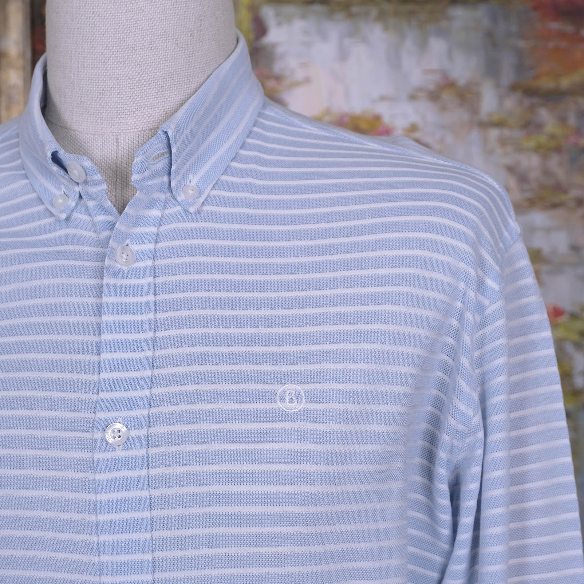 Bogner, blue shirt, size 41, horizontal stripes, piqué cotton