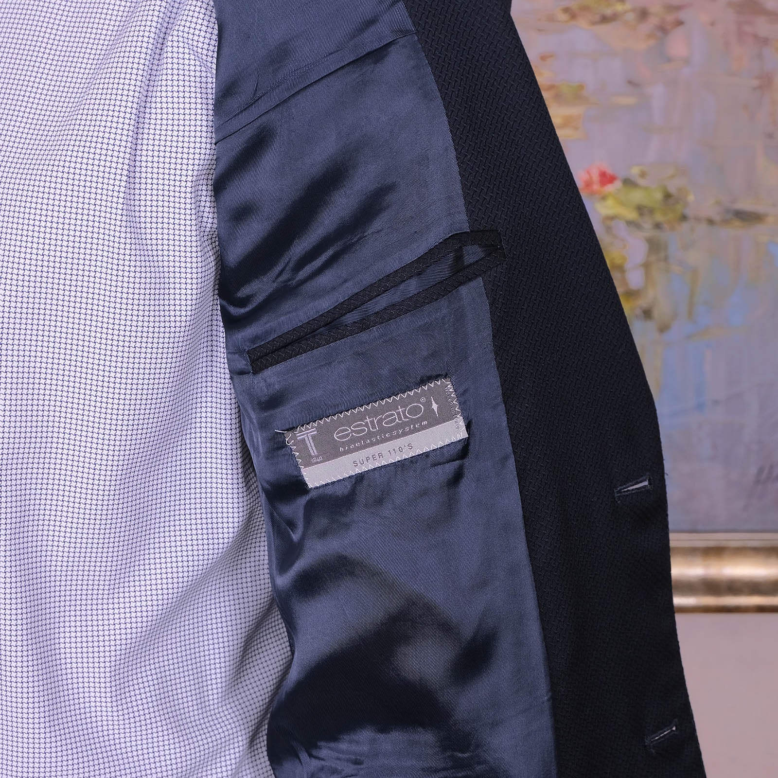 Kangas on 100 % hienoa ja ohutta villaa, jonka on valmistanut italialainen Trabaldo Tognan kutomo. Se on tehtaan Estrato-mallistosta ja joustaa erinomaisesti ilman keinokuituja. Super 110 -laatuista. Komia koripunoskuviointi.