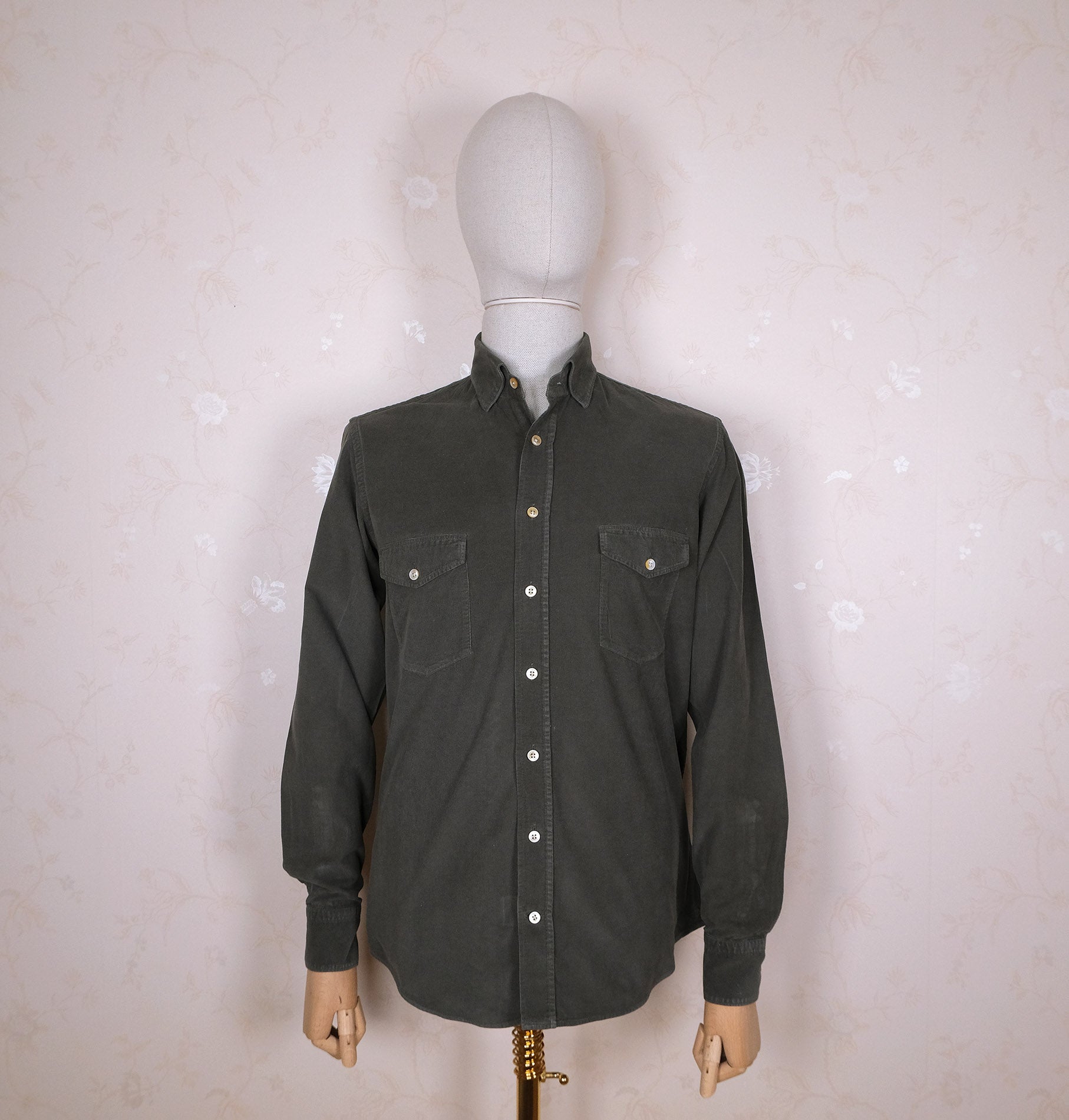 Poszetka, vihreä kauluspaita, koko 40, vakosamettikangas