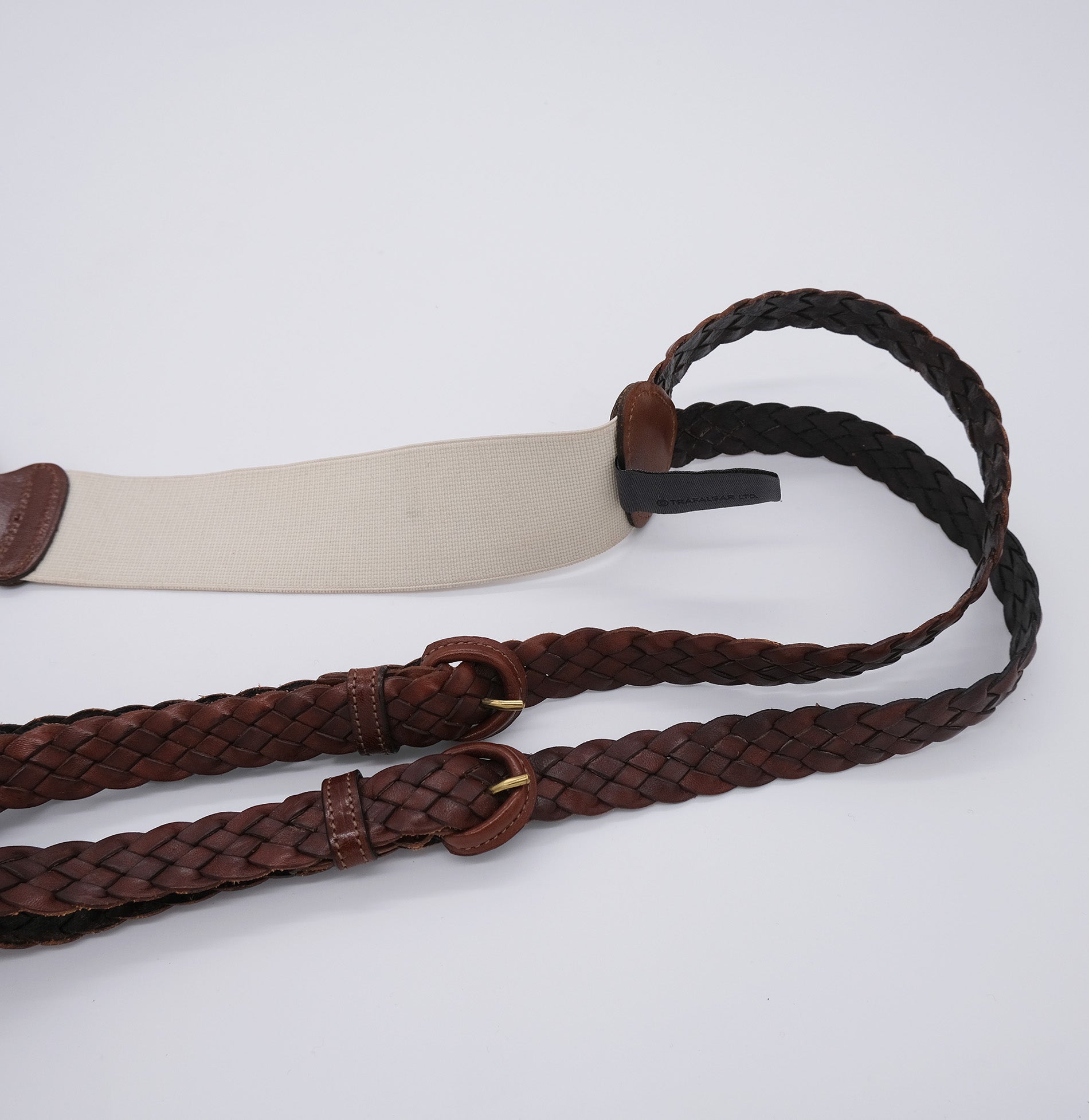 Trafalgar, brown braces, braided leather, made in USA