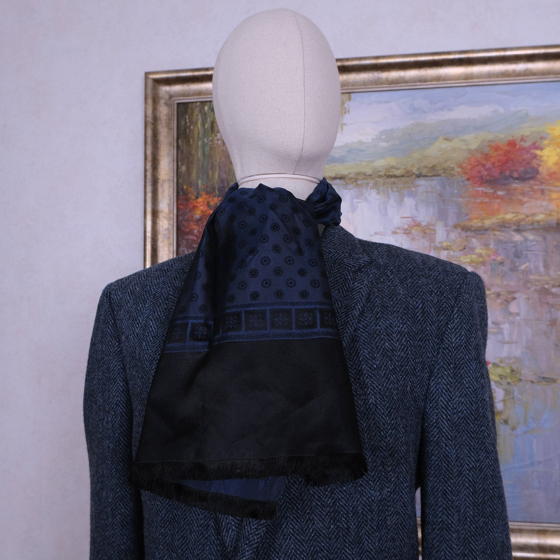 Ariston, musta-sininen kaulaliina, silkkiä, 2-puolinen
