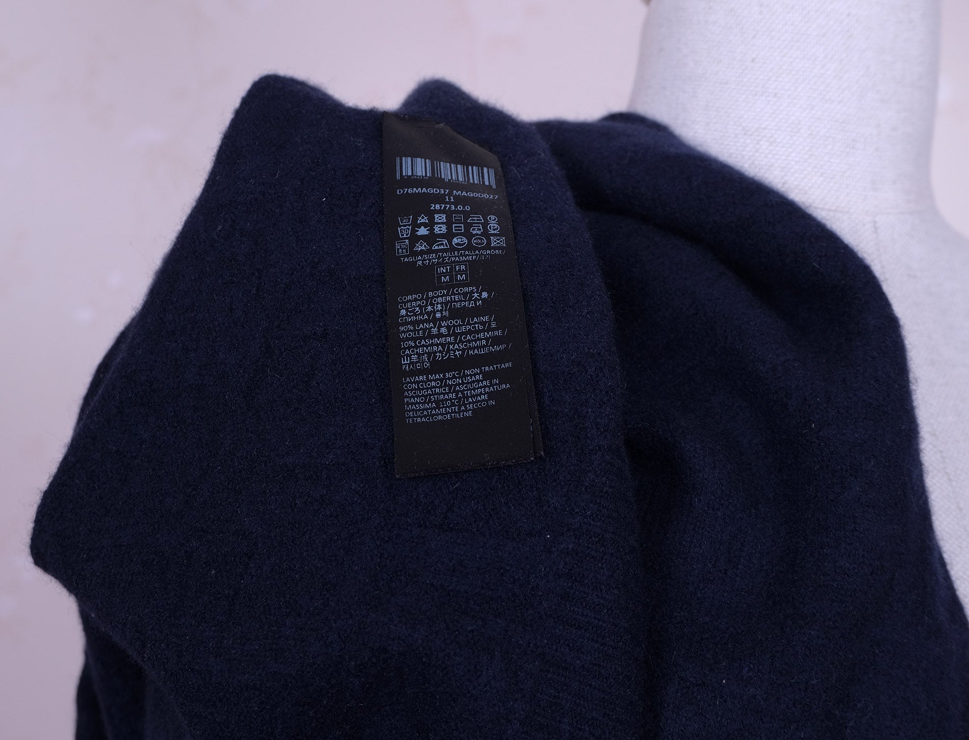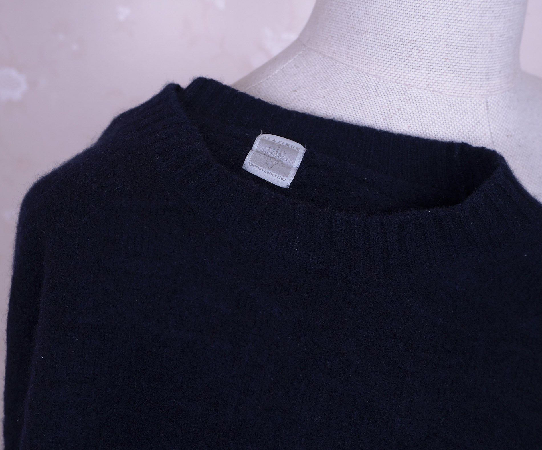 Tässä tummansininen neule, jossa on pieni aaltoileva kuvio, ja oikein miellyttävä harjattu pinta. Malli on Eleventyn kalliimmasta Platinum-mallistosta, jonka materiaalit ovat arkisen yläpuolella.