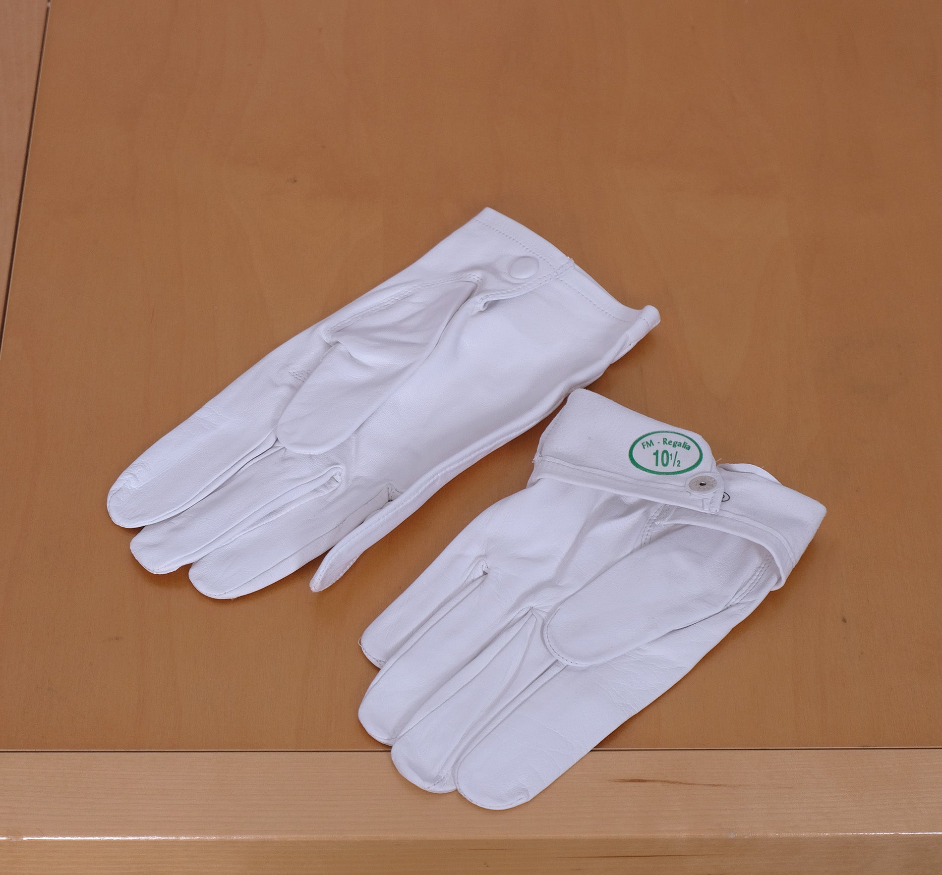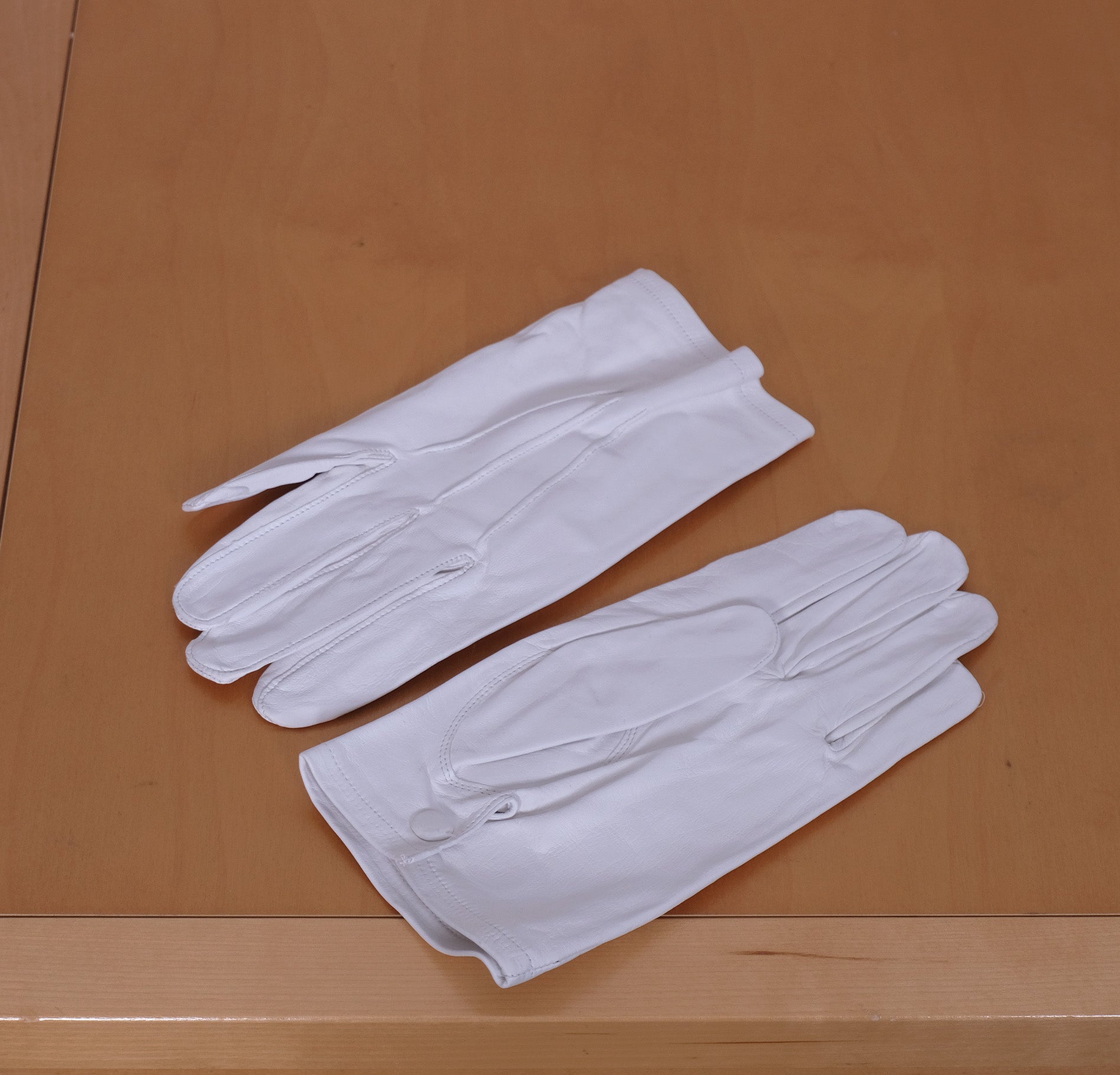 Frakkikäsineet ovat yleensä valkoista puuvillaa, mutta valkoinen nahka on hienompi materiaali. Sen läpi hiki ei tihku helposti kuin puuvillasta.