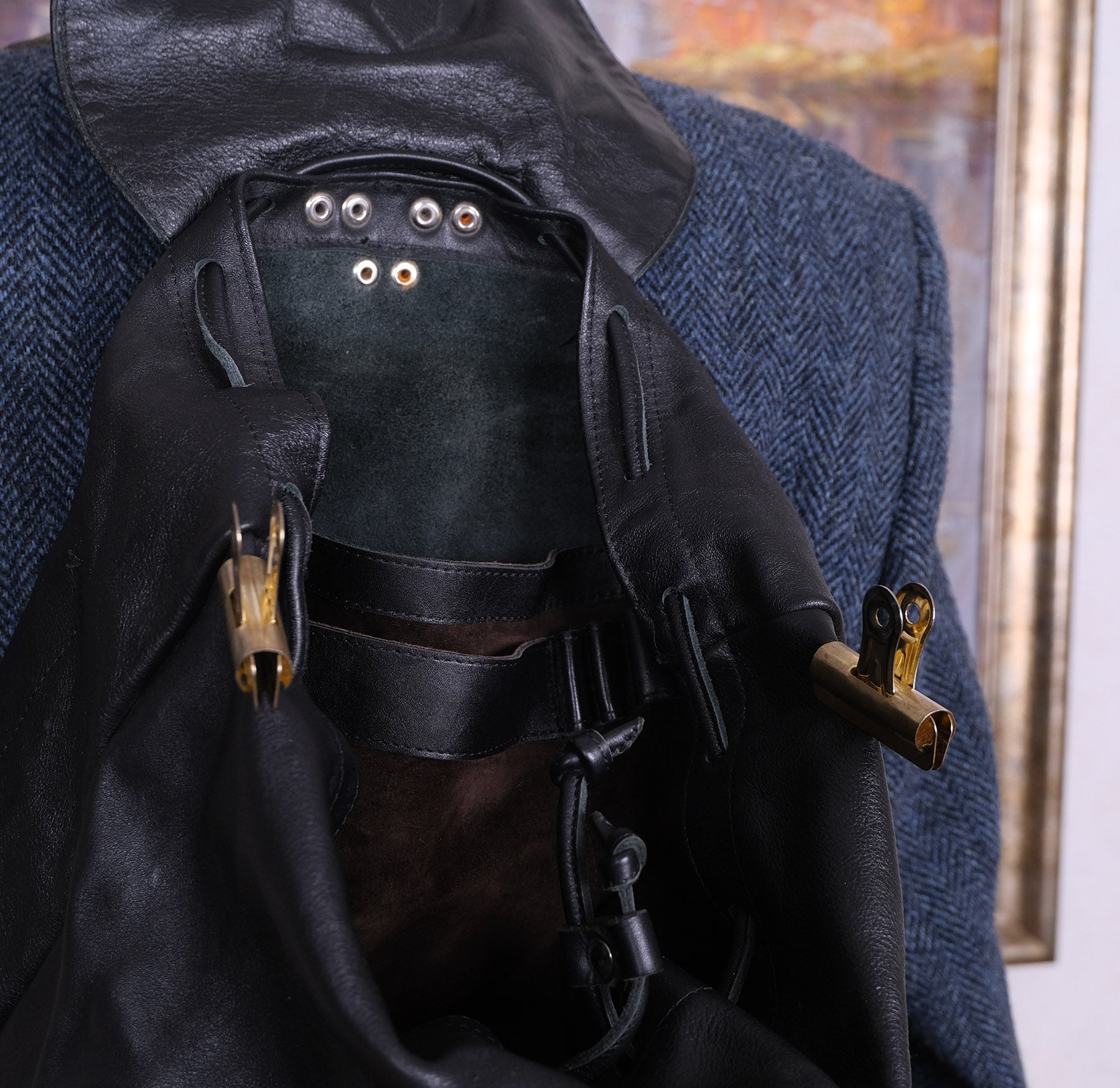 Nippanappa, musta nahkareppu, valmistettu Suomessa