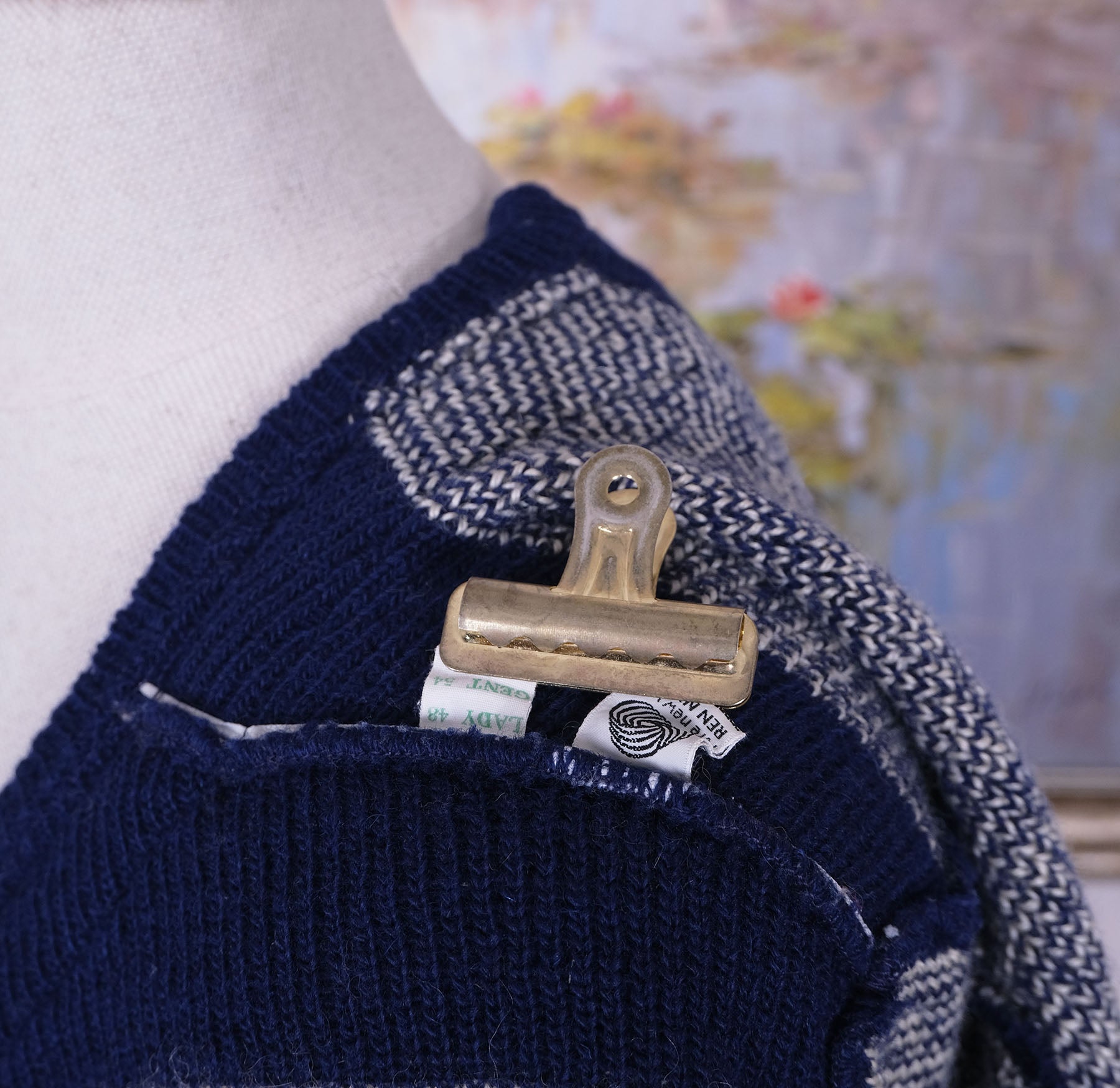 Tämän neuleen kokomerkintä on 54, joka vastaa L-kokoa.