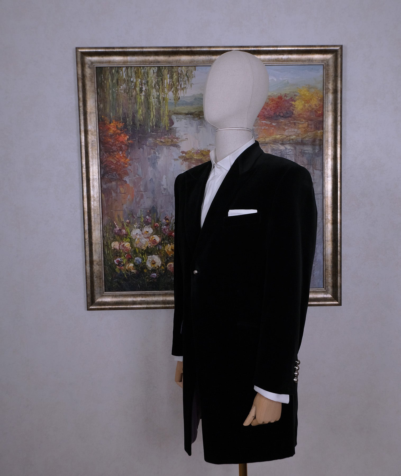 Räätäli Mikael Sinisalo, musta bonjourpuvun takki, koko 50, sulhasen vaatteet