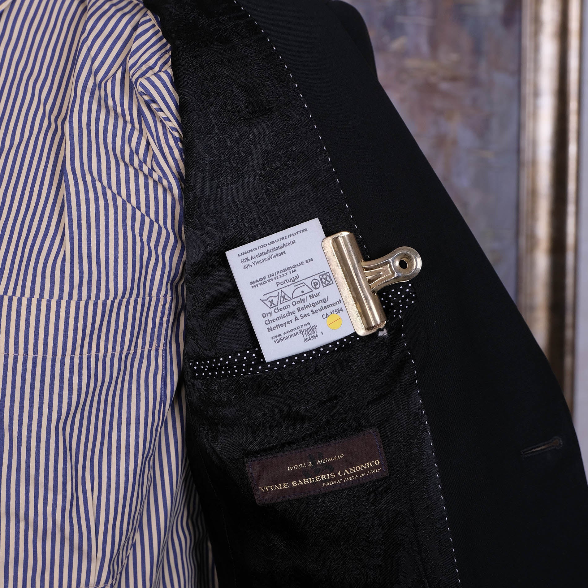 Kangas on 86 % villaa ja 16 % mohairvillaa, ja sen on kutonut Italiassa Vitale Barberis Canonicon tehdas. Sileää ja pehmeää ja hienoa. Verkkomainen kudos, joka päästää hien haihtumaan.