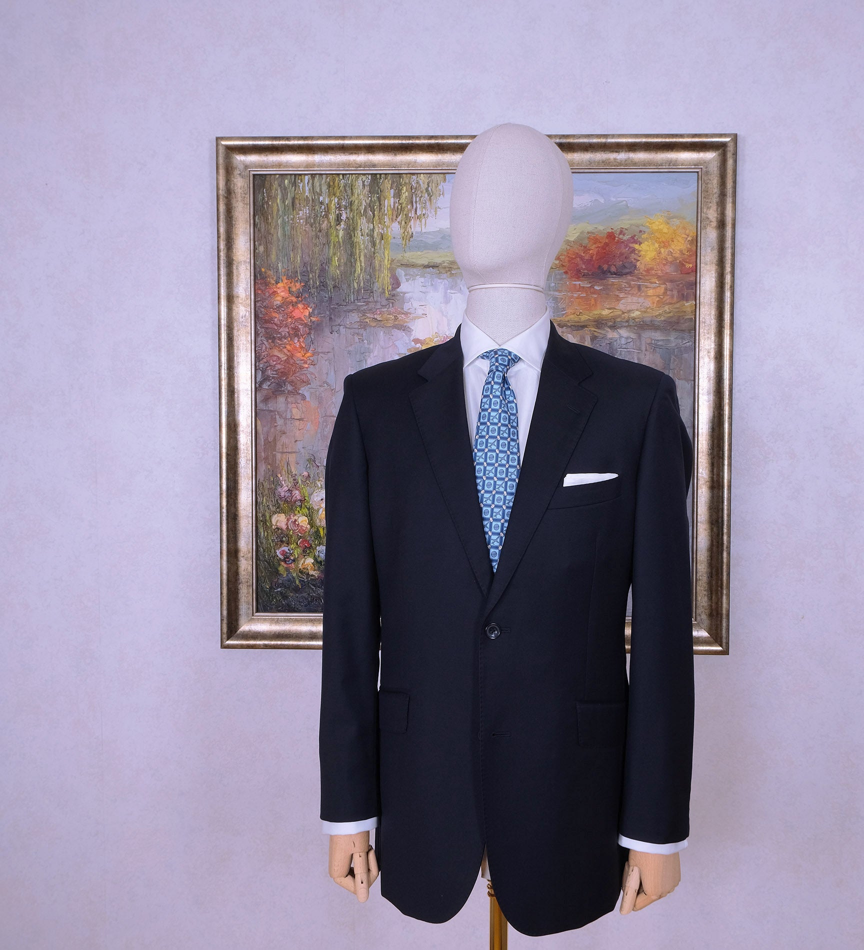 Koon 50 tumma puku, joka edustaa brittiläistä tyyliä joka tilanteeseen.