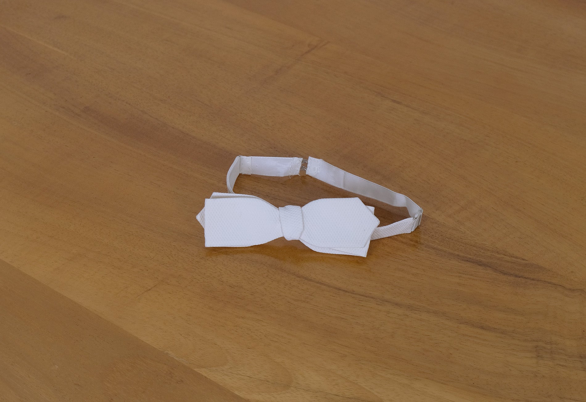 Valkoinen frakkisolmuke, käsin ommeltu, frakkirusetti